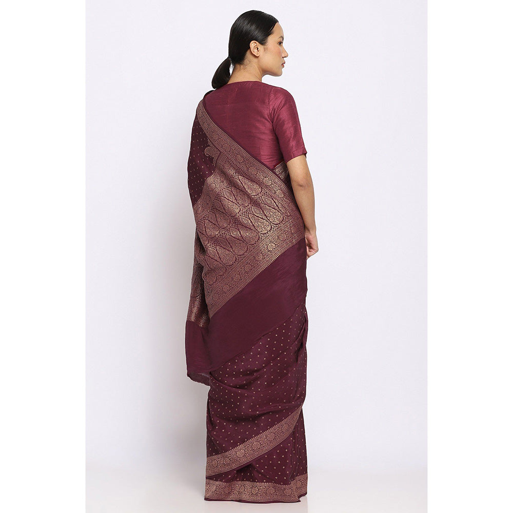 Via East Wine Crepe Banarasi Sitara Saree with Unstitched Blouse