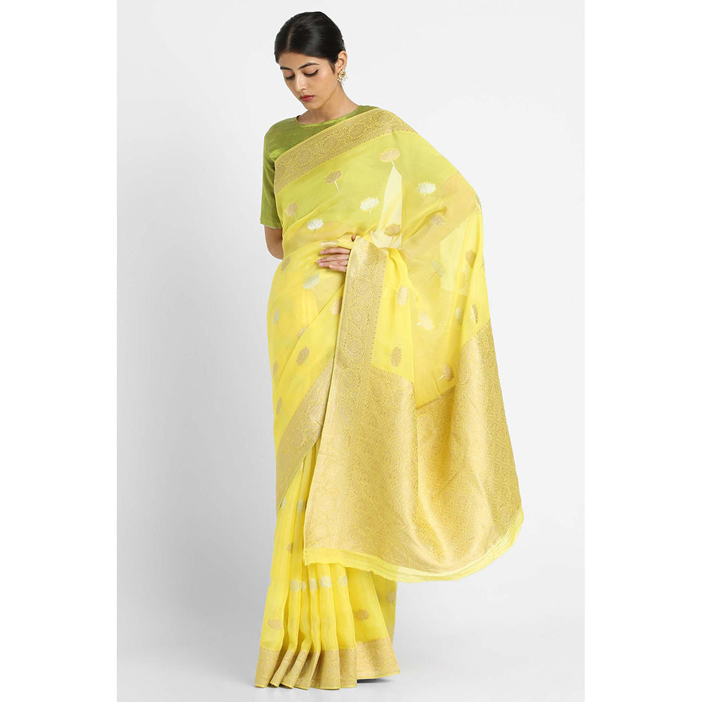 Via East Yellow Kusum Georgette Banarasi Saree with Unstitched Blouse