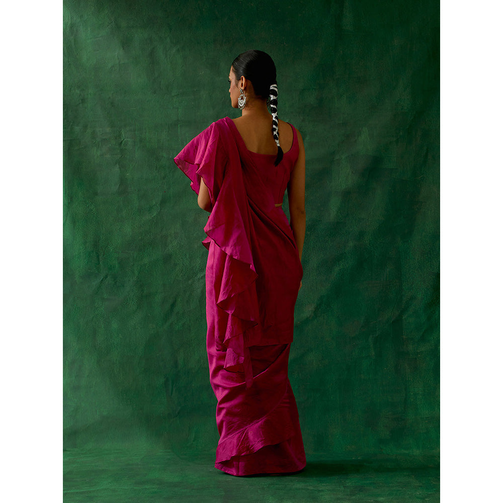 Description : Ready To Wear Ruffled Saree & Blouse In Hot Pink Chanderi