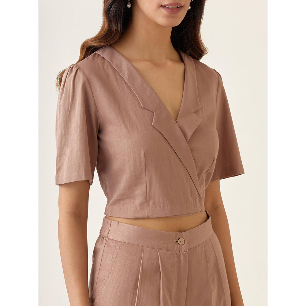 Description : Level Up Your Look With This Taupe Co-Ord Set From Vinusto. Crafted From Cotton, It Is Finished With Half Sleeves And A V-Neck. Complete The Look With A Pair Of Heels And Exquisite Jewellery Pieces.