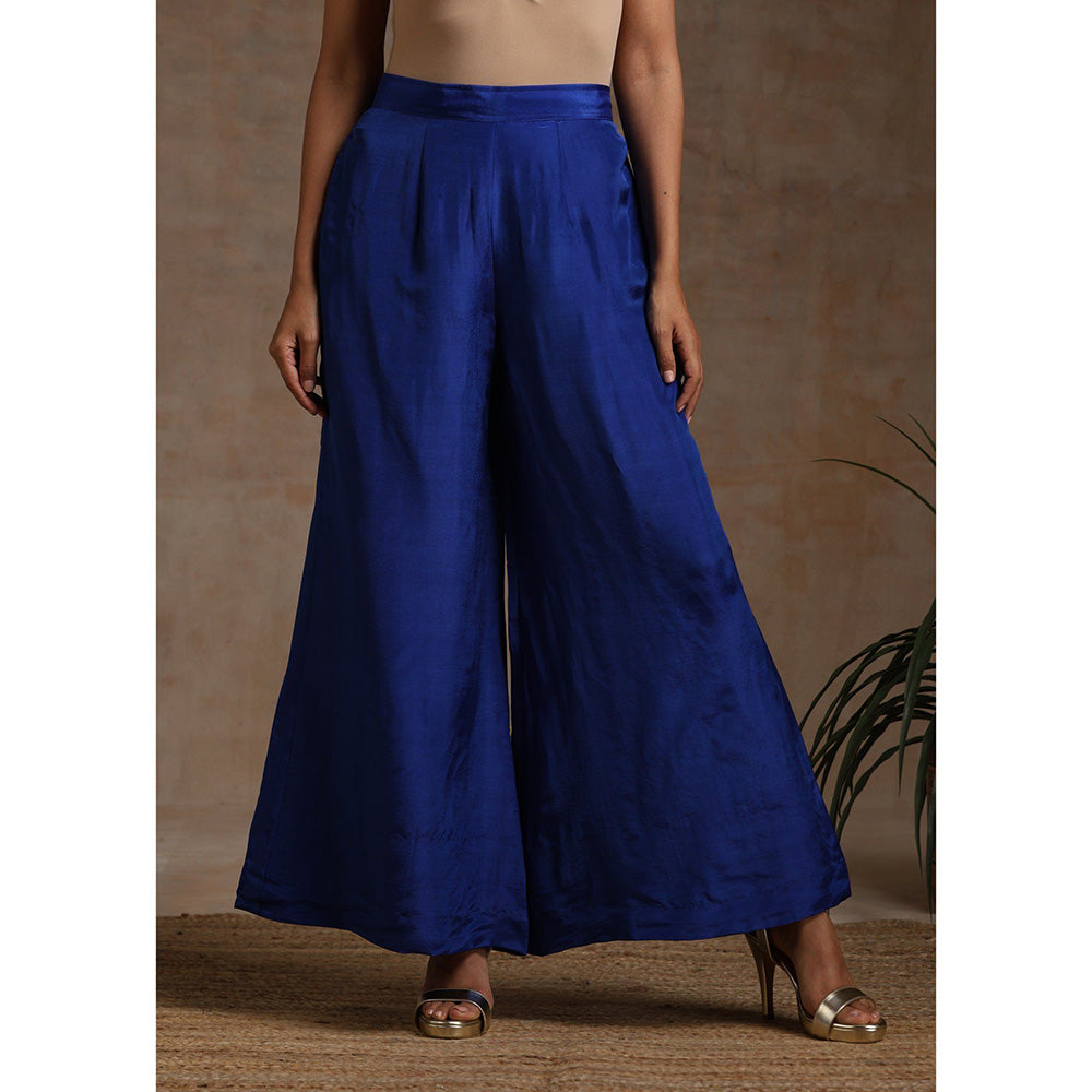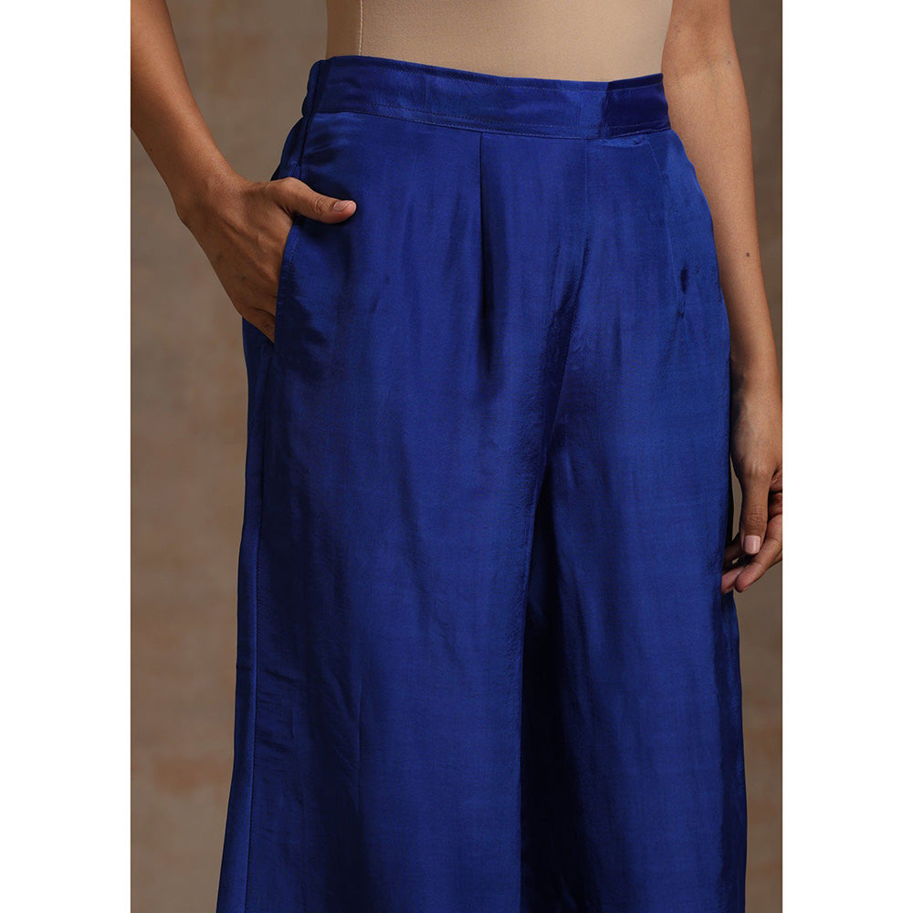Blue And Orange Kurta Flared Palazzo with Dupatta (Set of 3)