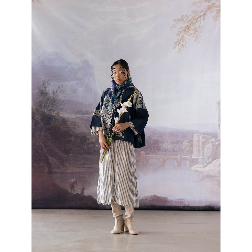 Description : Level up your look with this blue overlay from YAVI. Crafted from denim in a comfortable fit, it is finished with three fourth sleeves. Team it with a pair of jeans and sleek wedges.