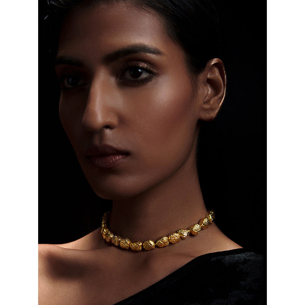 ZARIIN 22k Gold Plated Gold nuggets Choker Necklace