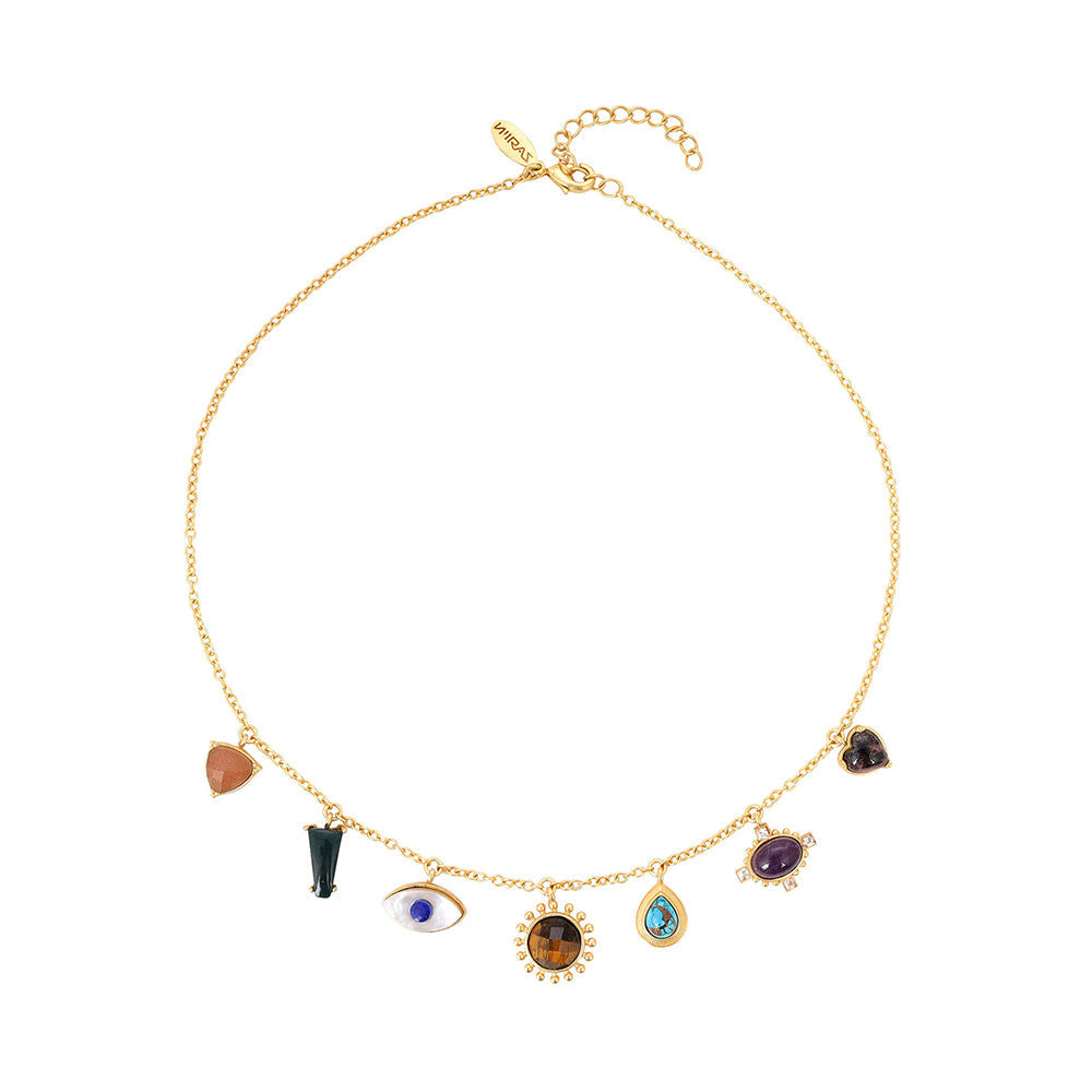 ZARIIN 22Kt Gold Plated Multi Stone Healing Pendants Necklace