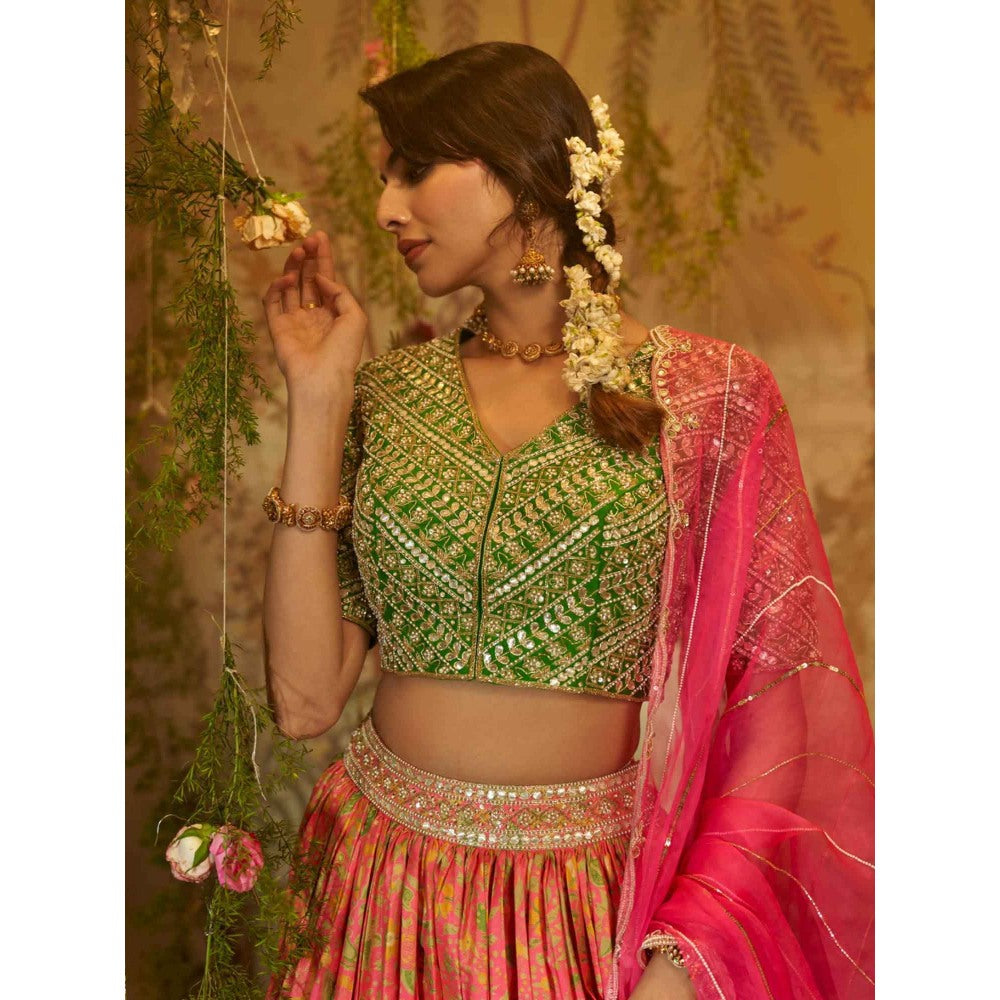Aayushi Maniar Gull-Mehendi Lehenga with Blouse and Dupatta Green (Set of 3)