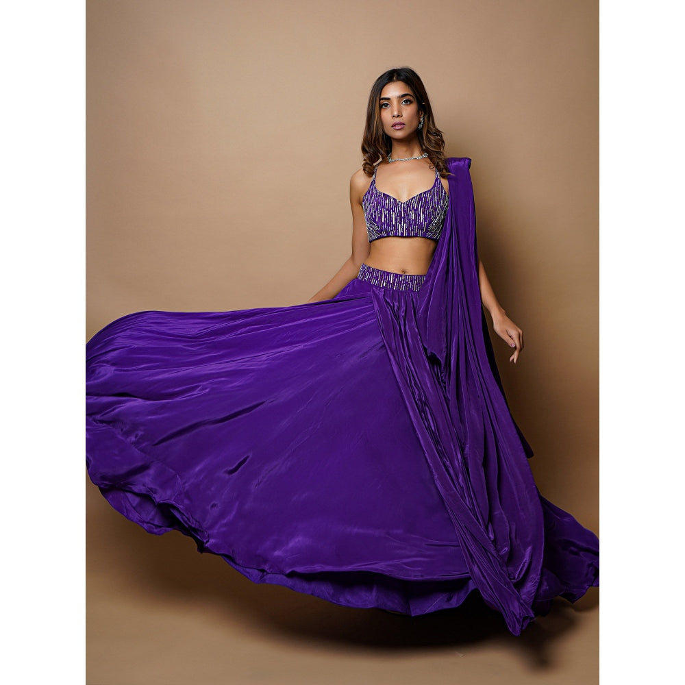 Ahi Clothing Dark Purple Lehenga (Set of 3)