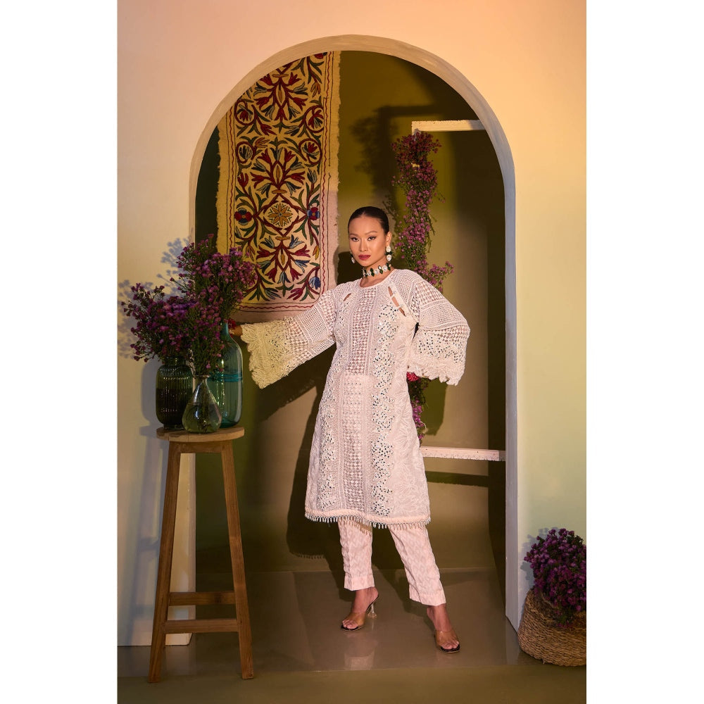 Aishwarya Tyagi Beige Lily Mirror Work Kurta with Pant and Inner (Set of 3)