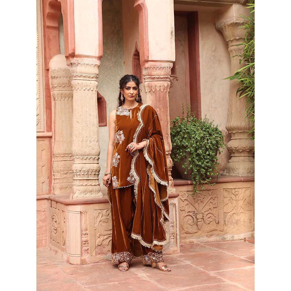 Honey Gold Kurta with Salwar and Dupatta (Set of 3)