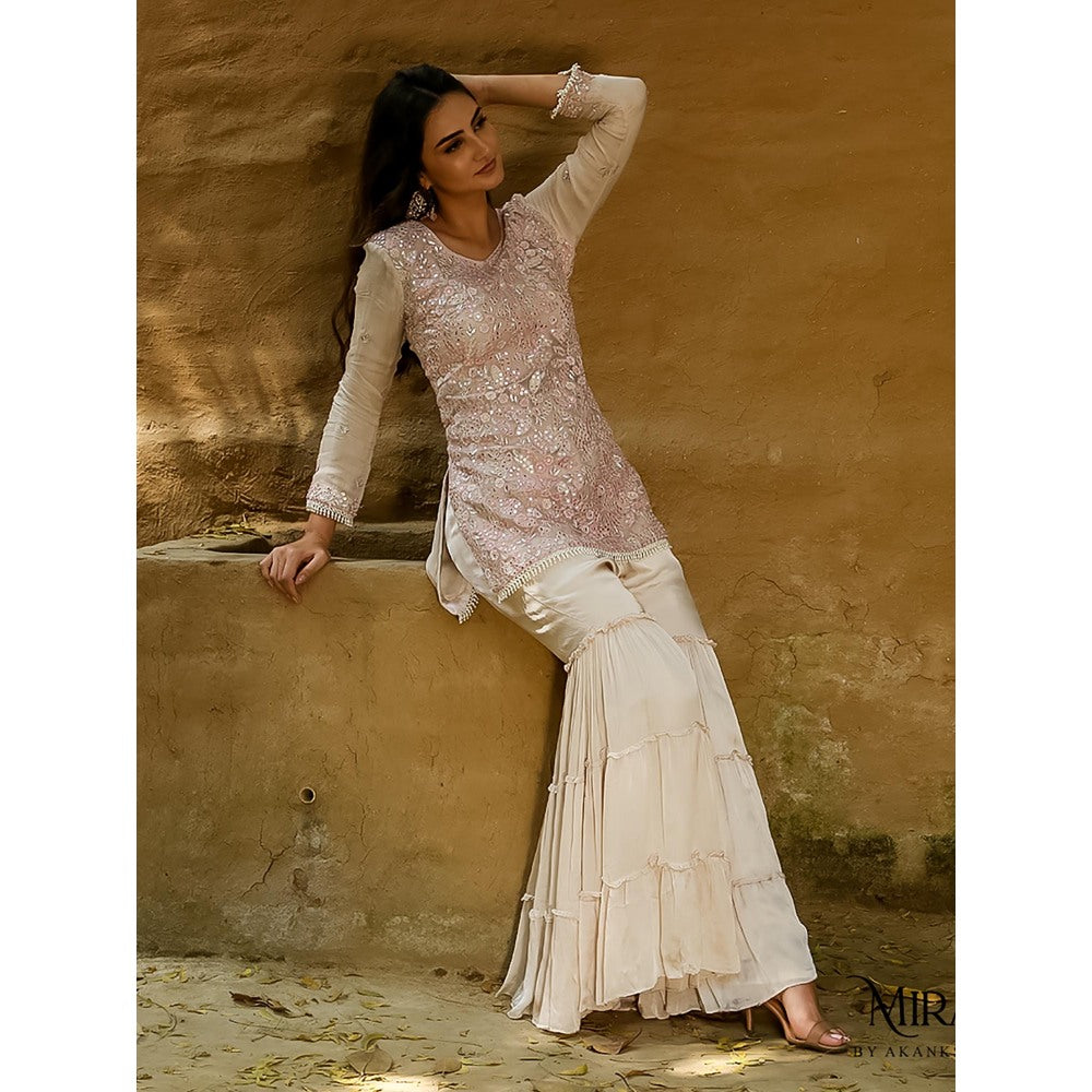 Akanksha Mago Faiza Pink & Off White Kurta Gharara (Set of 3)