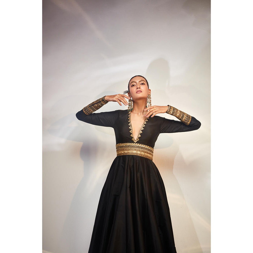 Women's Black A Line Embellished Maxi Dress