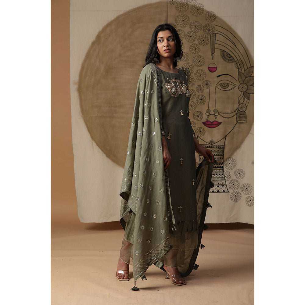 Arpita Sulakshana Olive Green Palki Suit (Set of 3)