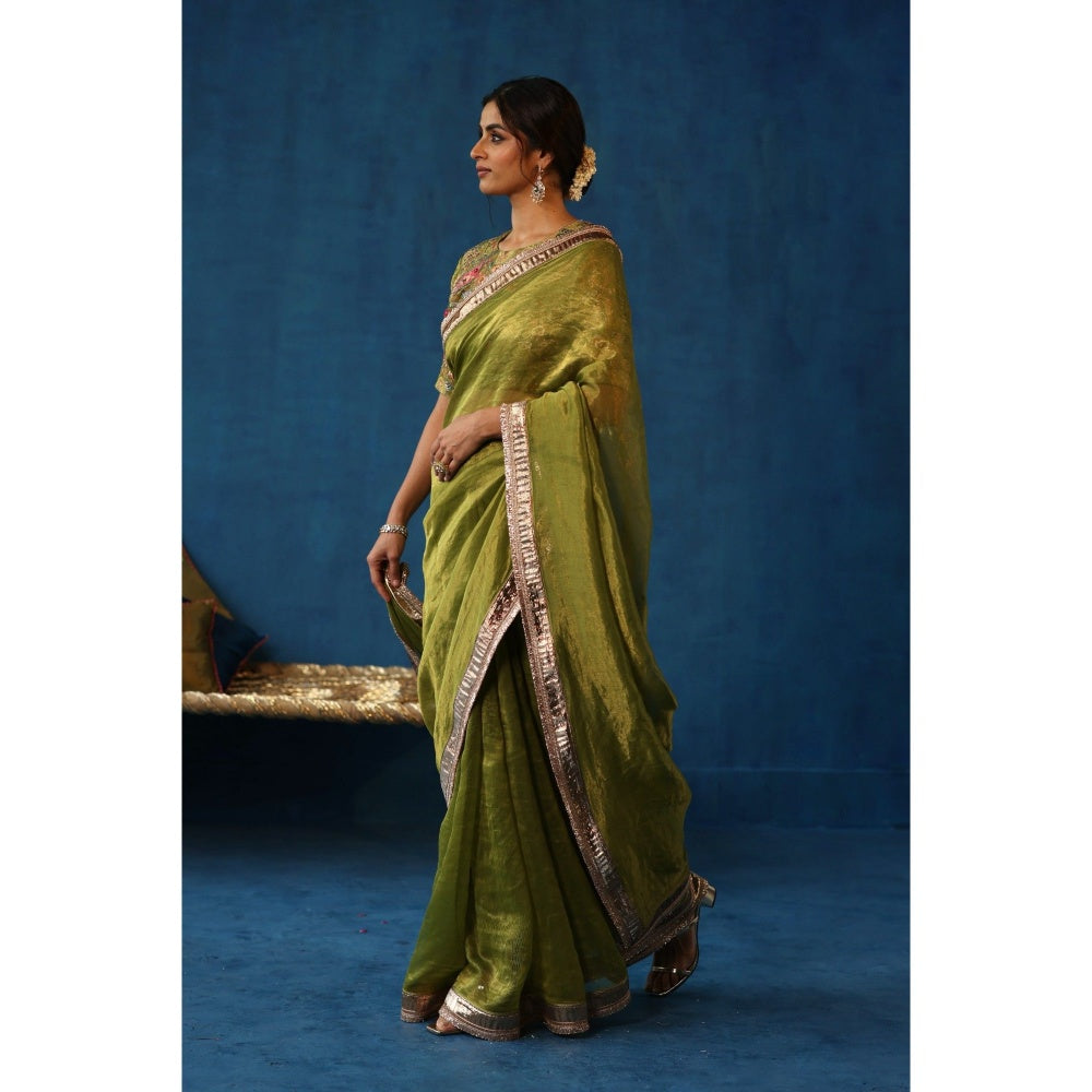 Green Sharbat Embellished & Zari Work Saree with Blouse with Stitched
