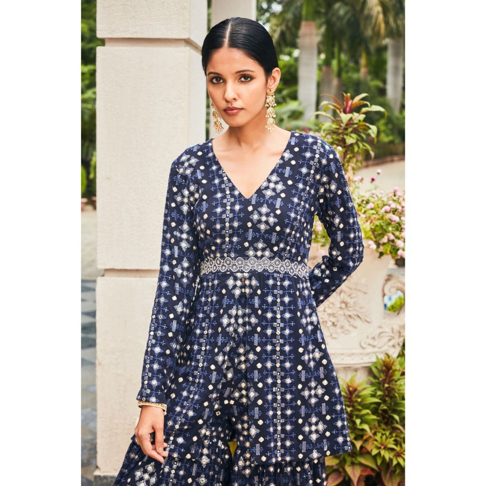 Nyra Teal Mirror Work & Chikankari Tunic & Sharara (Set of 2)