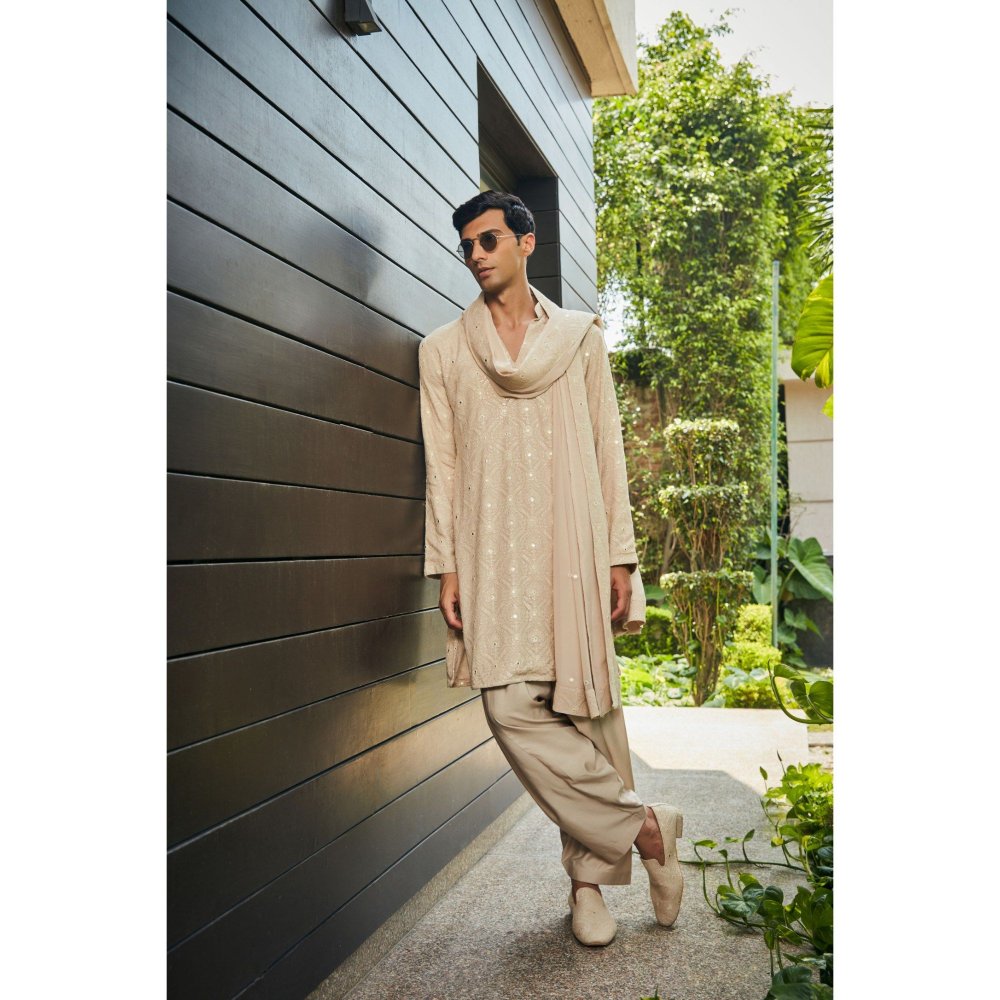 Udvah Beige Chikankari Kurta and Salwar with Dupatta (Set of 3)