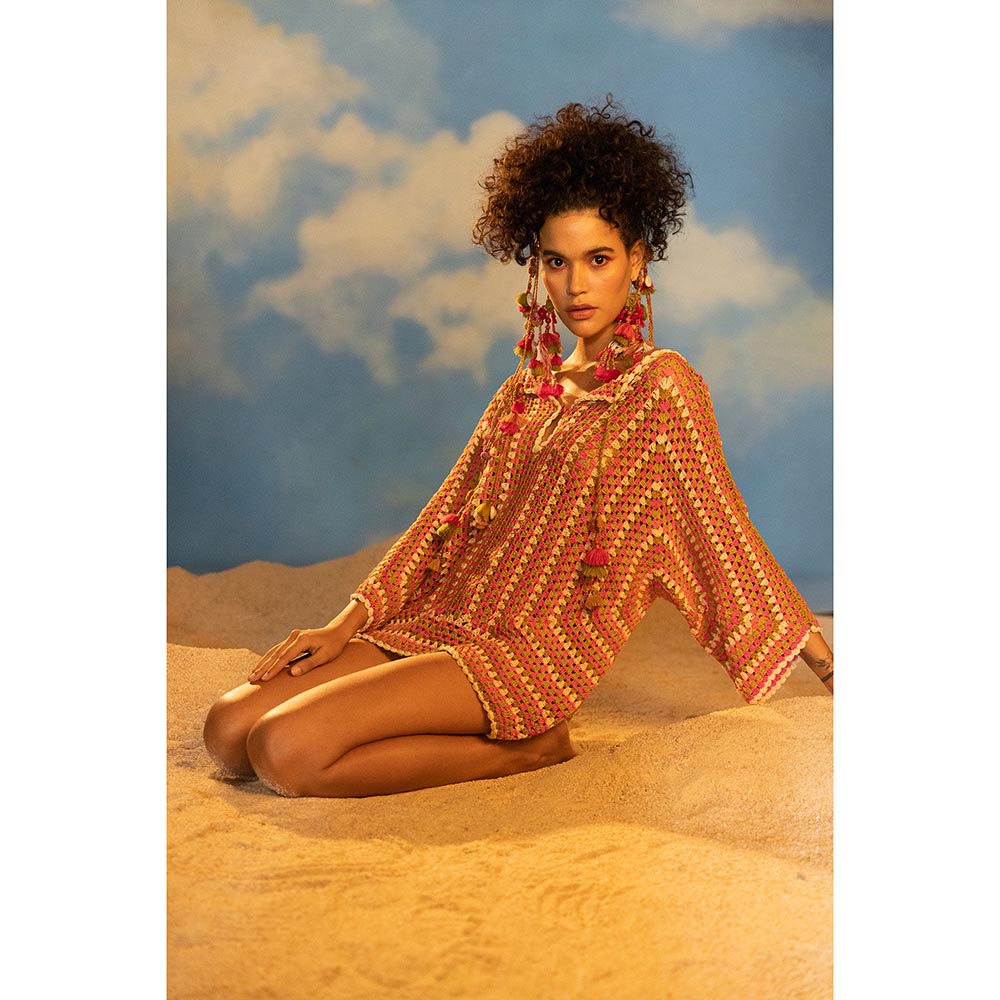 Description : Hexagonal Beading Multi Colour Boohoo Crochet Mini Dress With Dori String