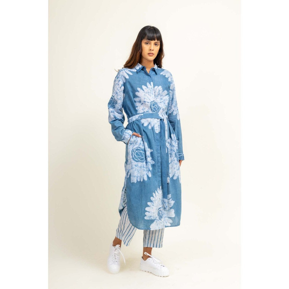 Sehela Blue Tunic With Pant And Belt (Set of 3)