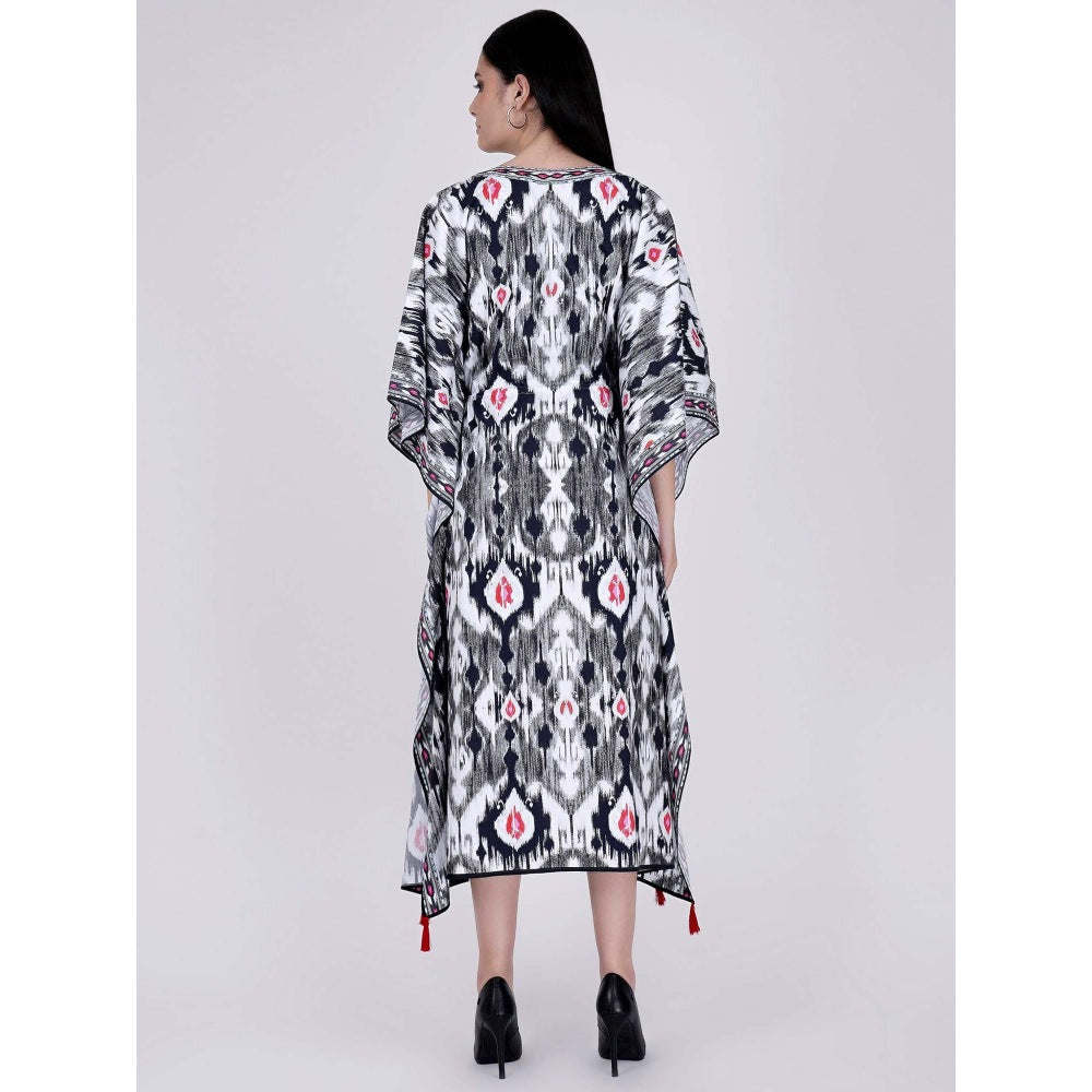 First Resort by Ramola Bachchan Black Ikat Print Mid Length Kaftan