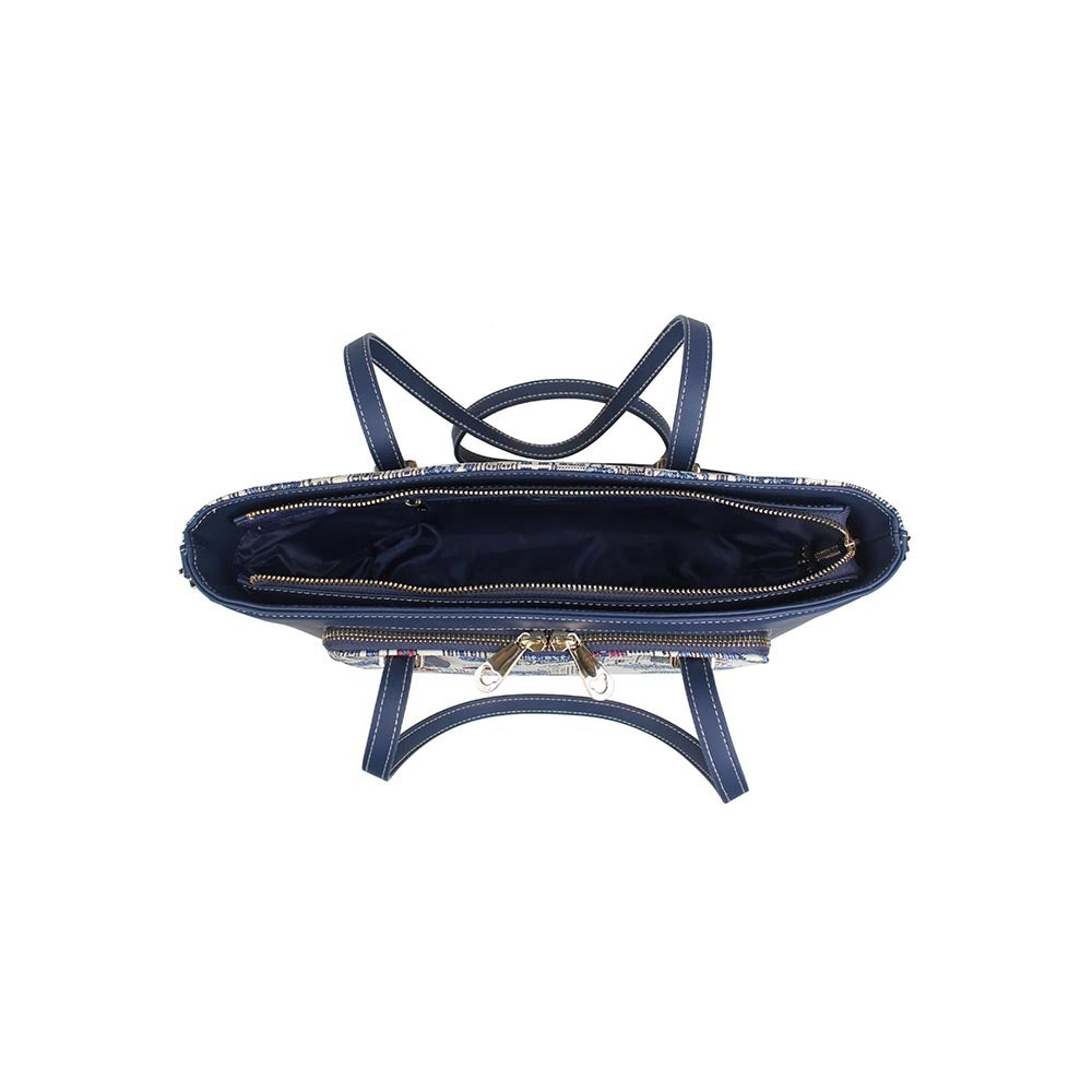 Description : Style your everyday look with newly launched totes, part of our tapestry handbag collection. Designed with durable tapestry fabric, faux leather accents, and a roomy interior, this tote blends functionality with fashion. A perfect choice for modern women who seek style and practicality in one handbag. Additional information :type: tote size: height35cm width13.5cm depth26cm outer material: tapestry inner material: polyester leather parts: faux leather country of origin: prc front zipper compartment for quick access exterior features: back pocket for extra convenience metal feet at the bottom to protect from scratches adjustable sling shoulder strap for versatile carrying interior features: spacious main compartment with secure zipper closure one internal zipper pocket for valuables two slide-in pockets to organize essentials