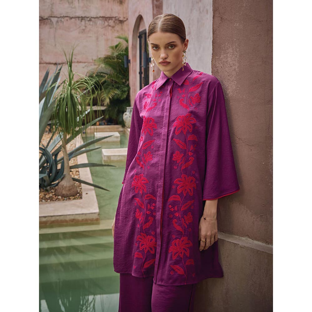 House of Fett Dahlia Crepe Embroidered Tunic - Purple