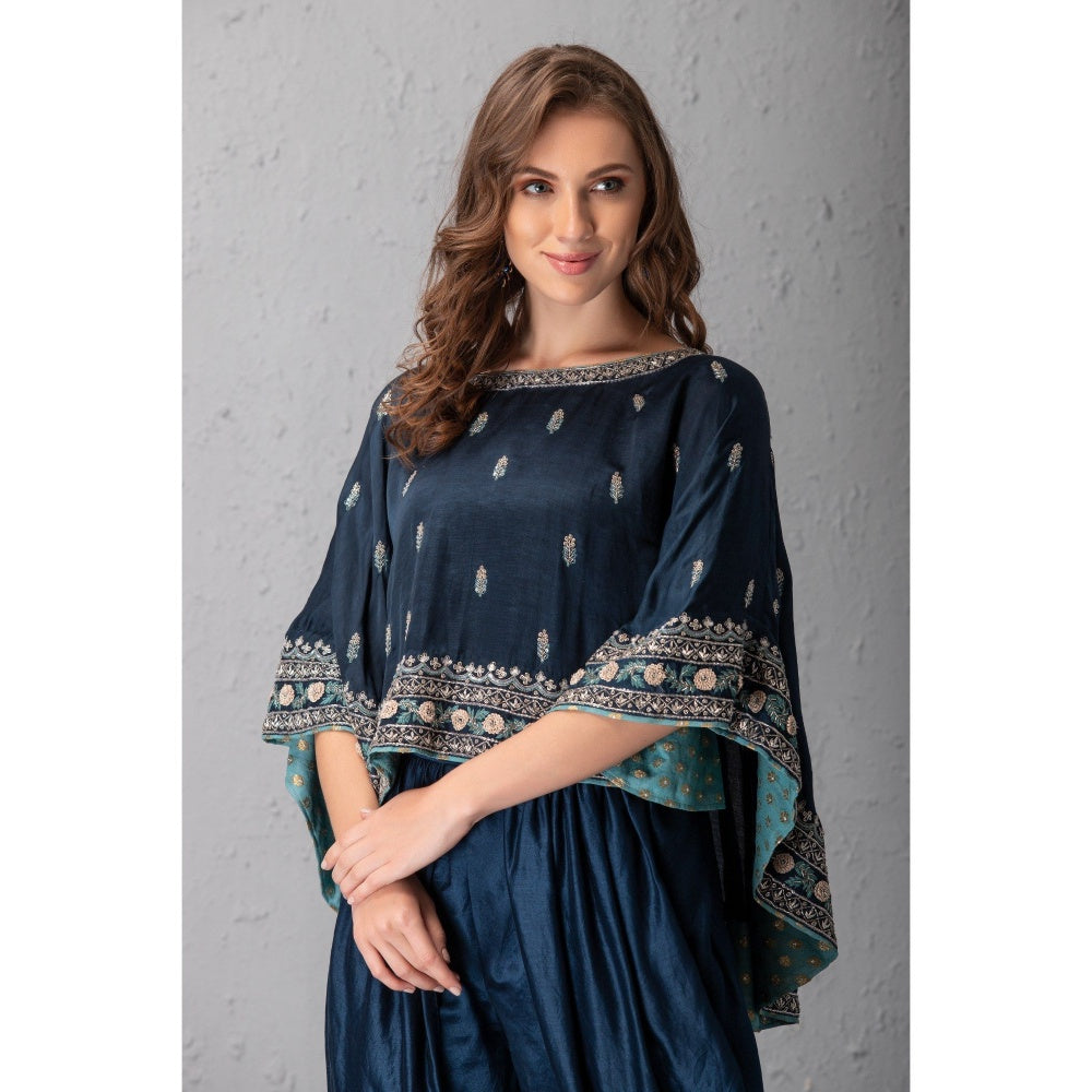 Midnight Blue Cape Top with Dhoti (Set of 2)