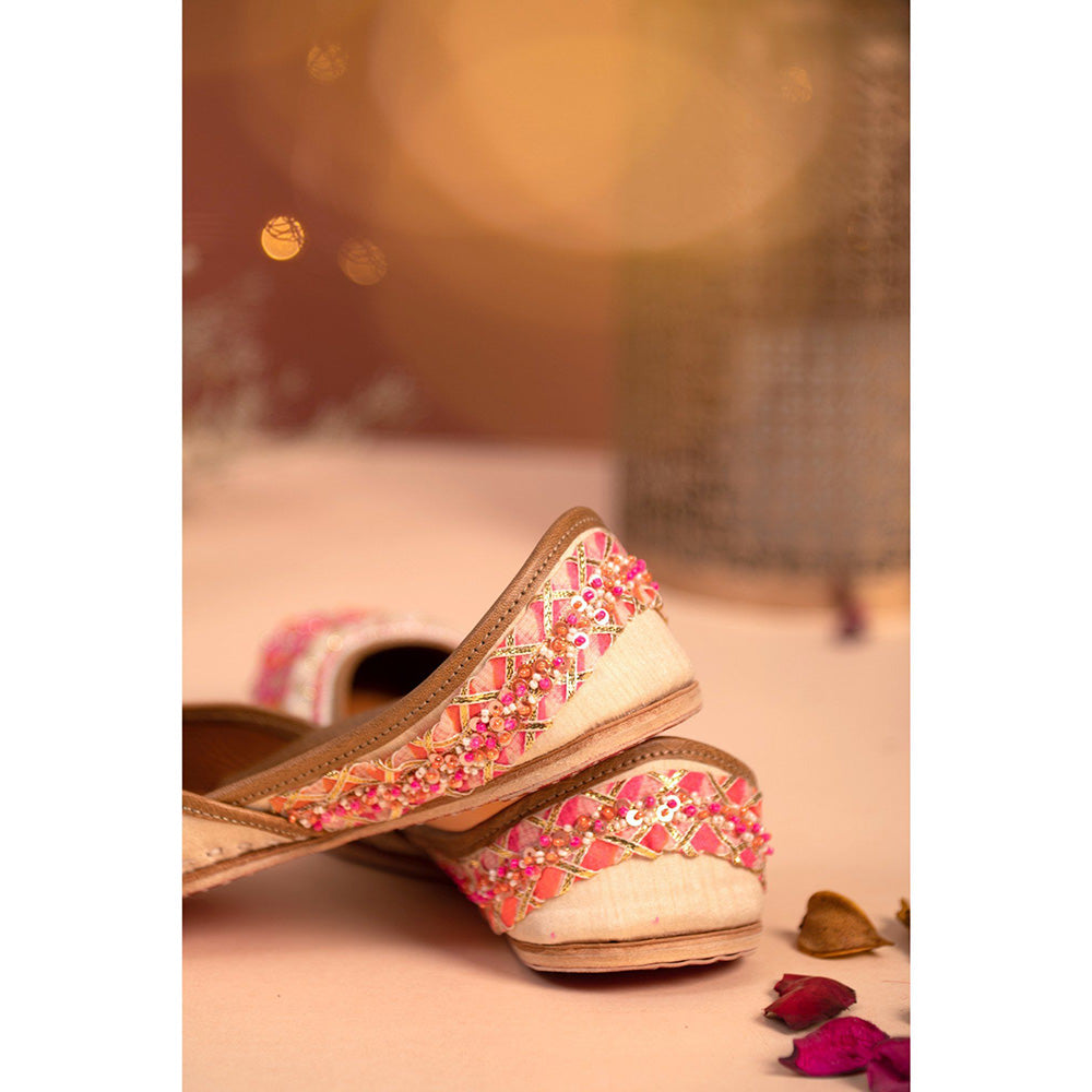 House of Vian Nargis Pink Embellished Juttis