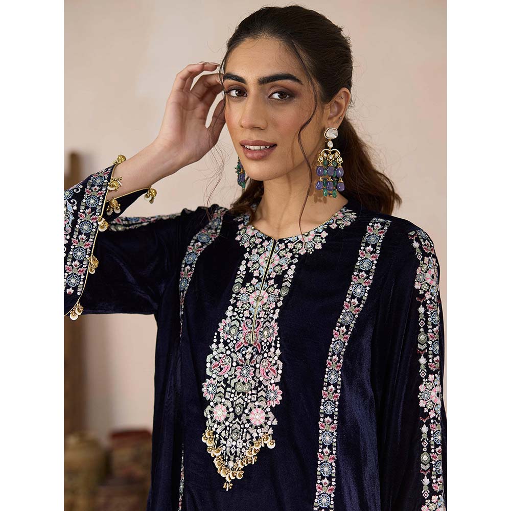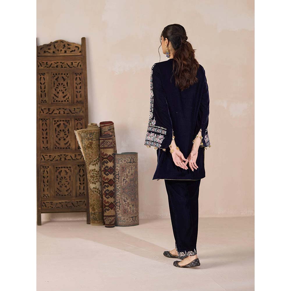 Inej Navy Blue Kashmiri Kurti with Pant (Set of 2)