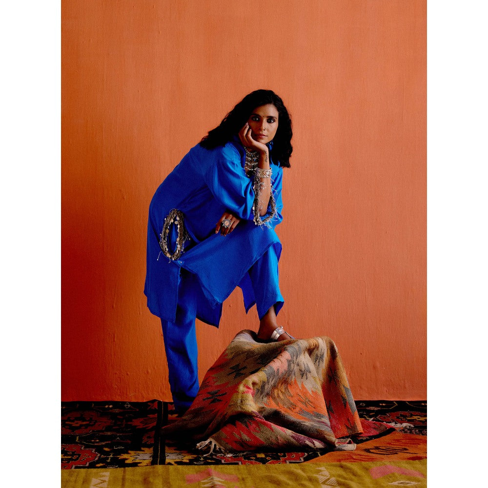 Karishma Khanduja Pradeep Blue Embellished Kurta and Pant (Set of 2)