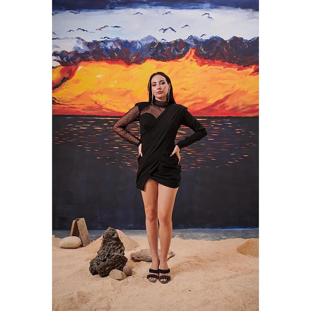 Description : British Black Mini Dress Has High Neck Slim Fit Which Is Good For The Party