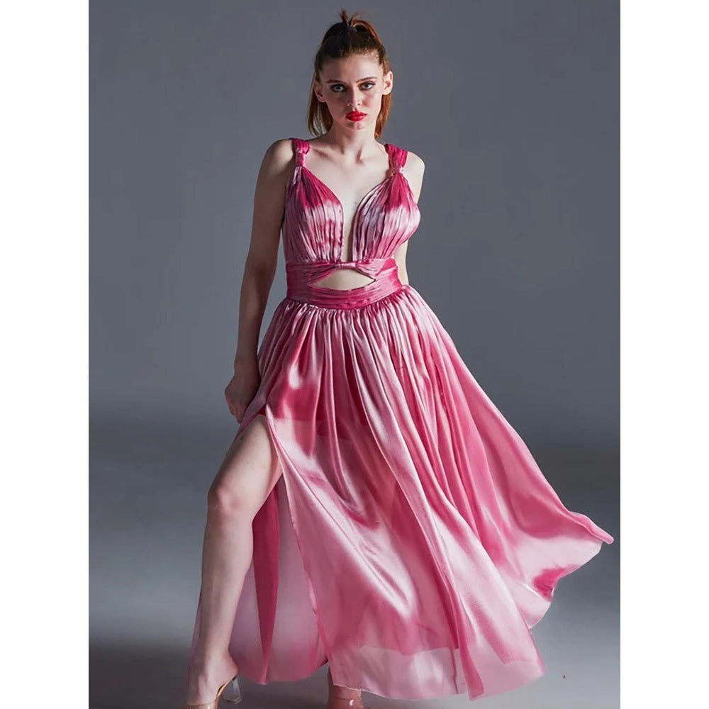 Description : Caitlyn Pink Maxi Dress Has Plunging Neck Comfortable Fit Which Is Good For The Party