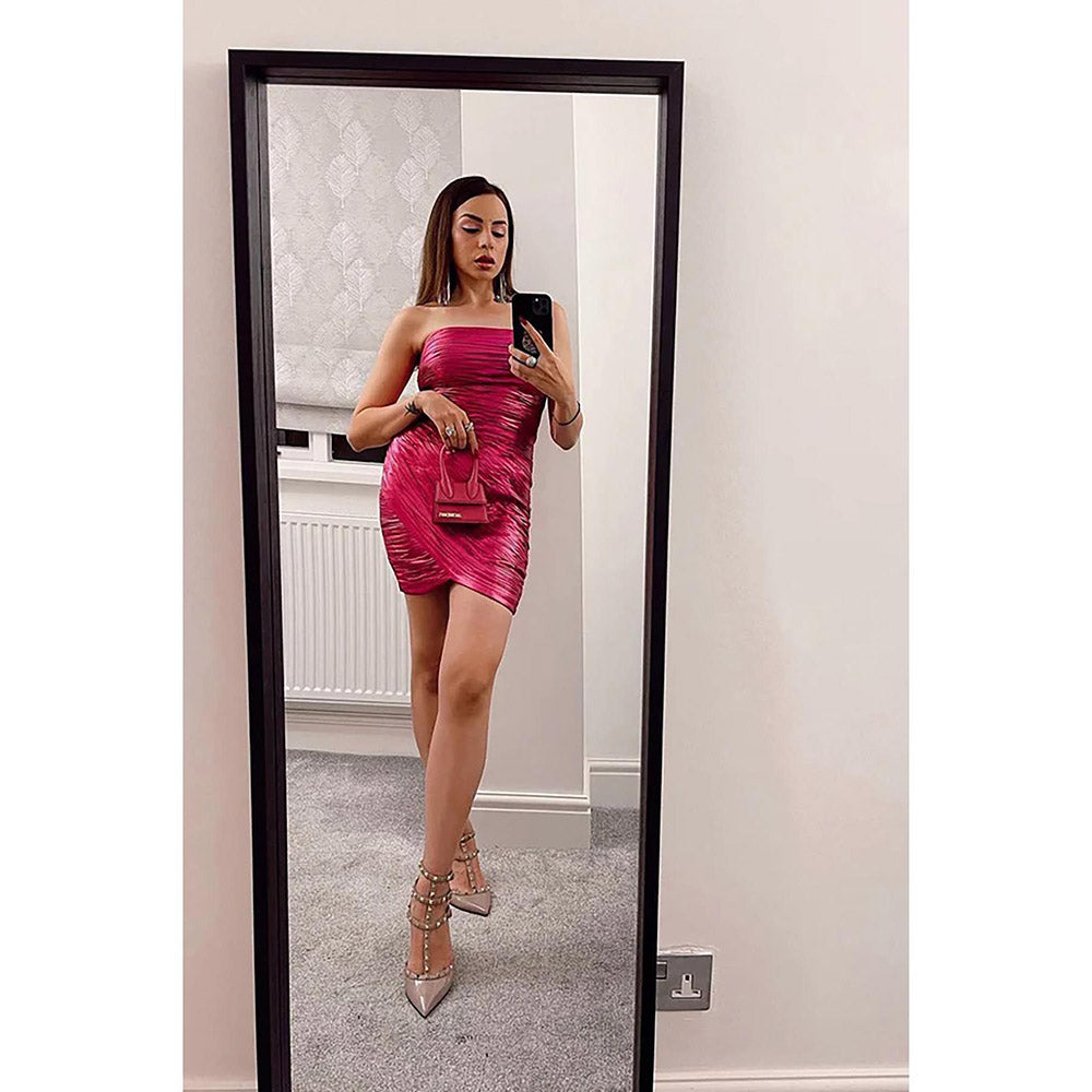 Description : Fishy Fit Pink Mini Dress Has Strapless Tube Bodycon Fit Which Is Good For The Party