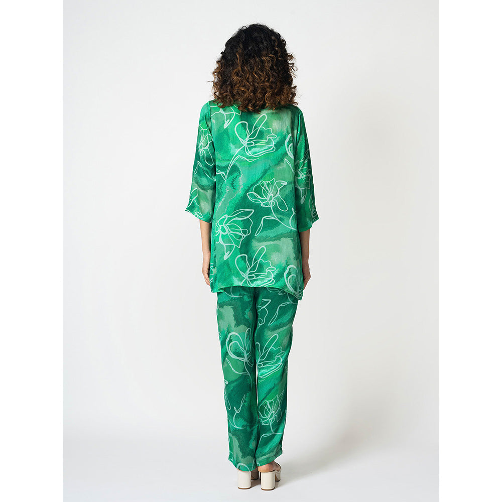 Description : Adorn The Chic With This Green Co-Ord Set From Klad. Made From High Quality Satin, It Features Pull On Closure And Printed Pattern Along With Sleeveless & Shoulder Straps Design. Pair It With Trendy Footwear To Complete Your Ensemble.