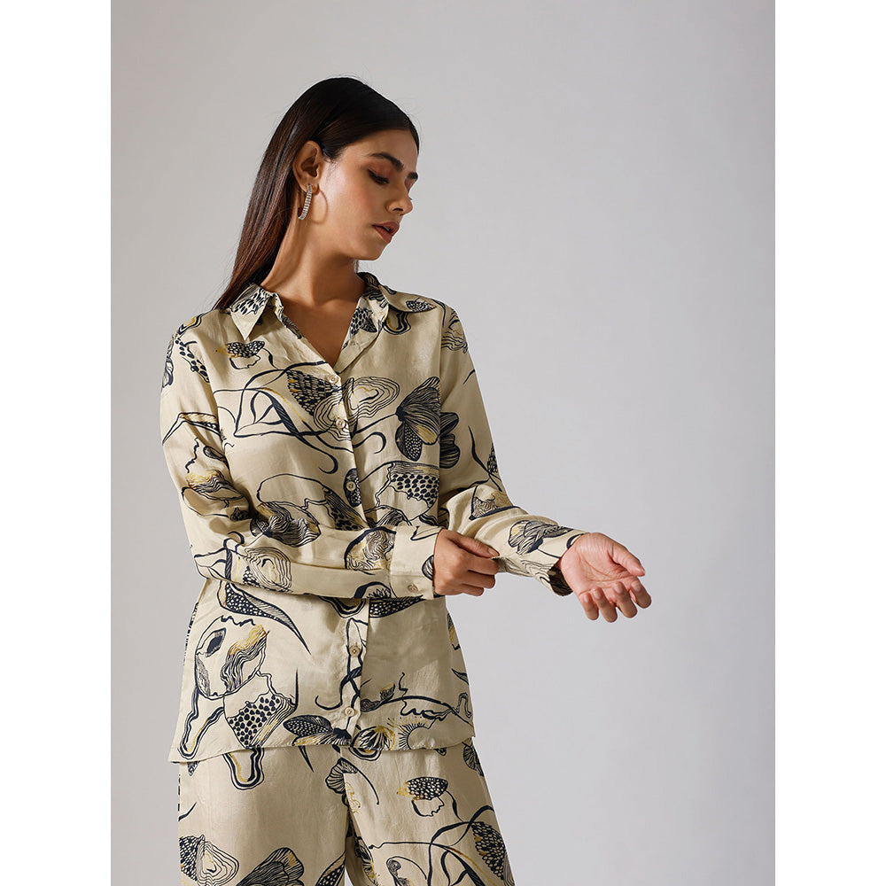 Klad Reflect Beige Printed Collar Neck Shirt
