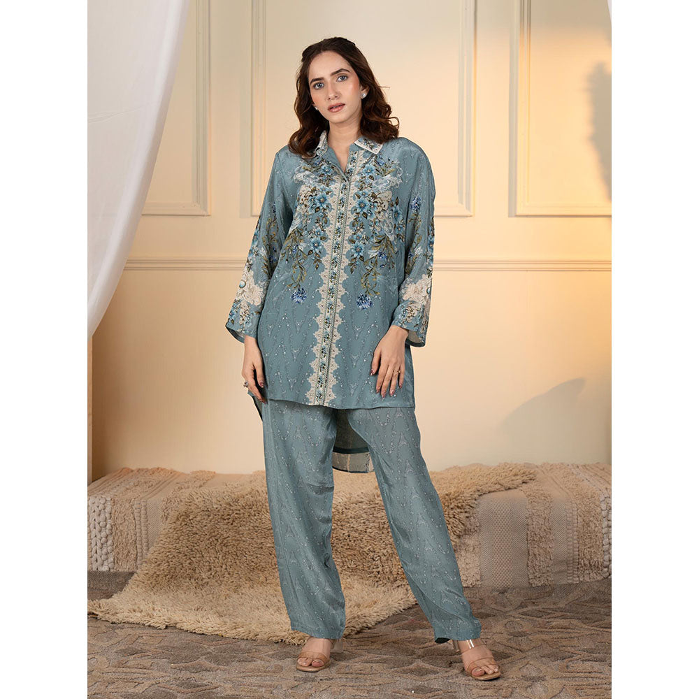 Womens Crepe Floral Blue Co-Ord Set