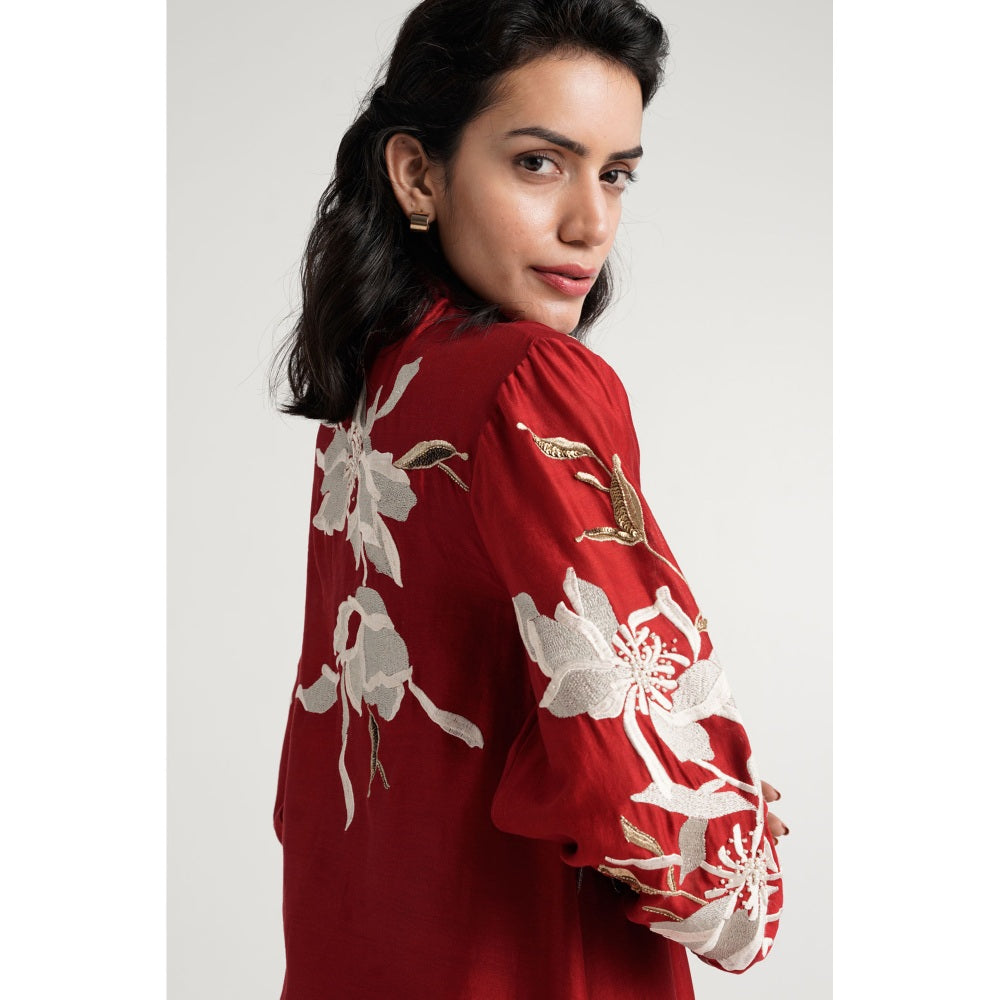 Description : Step into the world of effortless style with this red dress from Madder Much. Made from high-quality fabric, the dress features full sleeves, a tie up neck and an embroidered pattern. Style it with minimal jewellery and sandals to complete the ensemble.