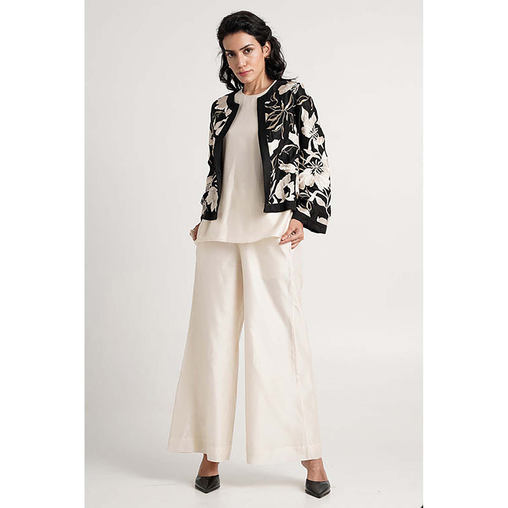 Description : MADDER MUCH Multi-Color Cotton Round Neck Embroidered Top With Pant And Shrug