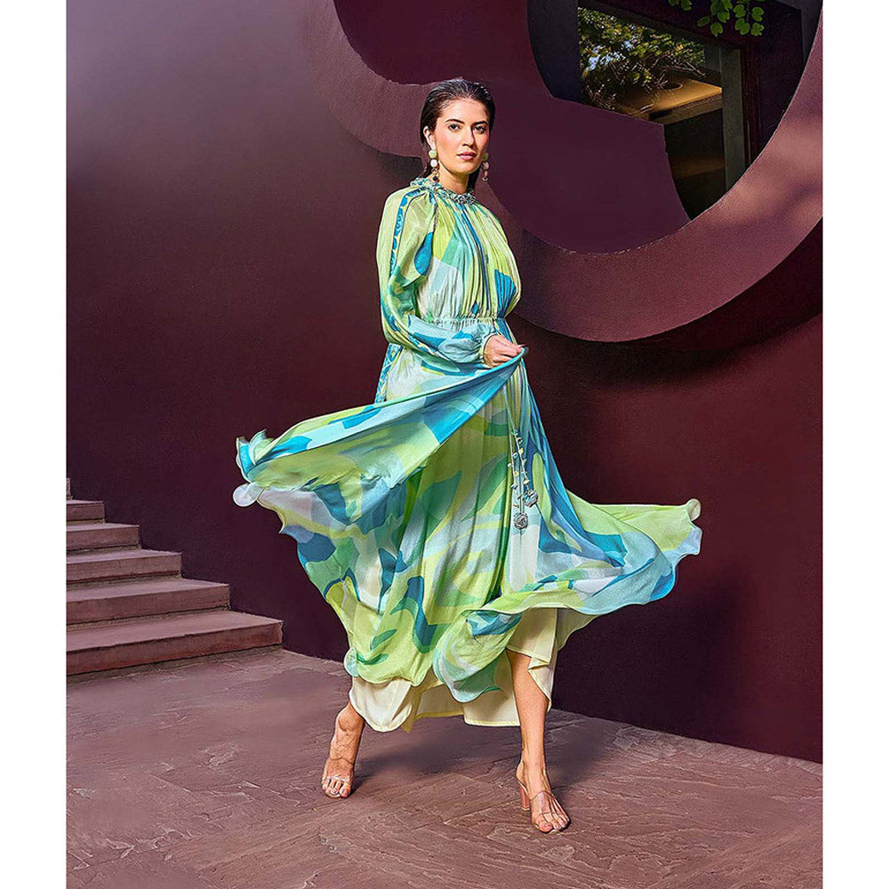 MANDIRA WIRK Green Abstract Print Geo Dress