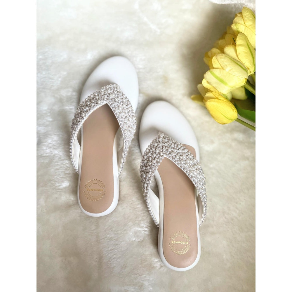 Description : V-strap wedges with pearl embroidery. Comes with a soft cushion lining which makes it extremely comfortable and can be worn for long hours. Our footwear is Vegan and handmade by local artisans and made with utmost love and care!