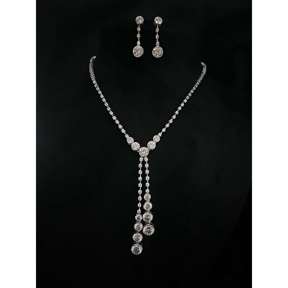 Bezelting Drop Necklace with Pair of Earrings - White