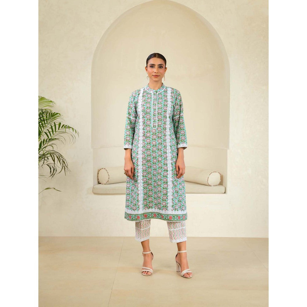 Naseebo Mint Green Reverie Luxe Cotton Premium Kurta with Pant and Dupatta (Set of 3)