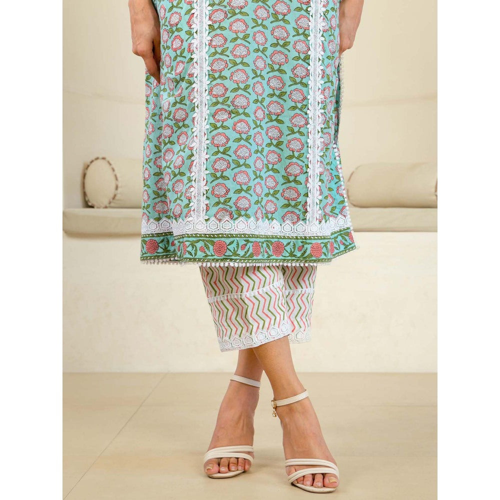 Description : Introduce Timeless Sophistication To Your Wardrobe with Our Mint Reverie Luxe Cotton Premium Kurta Set, Made From 100% Pure Cotton for Unmatched Softness and Comfort. The Kurta Features A Straight-Fit Silhouette, Collared Neck, and Delicate Lace Accents, Enhanced By Hand-Block Printed Designs and Three-Fourth Sleeves for A Chic, Yet Classic, Appeal. Topped Off with Semi-Elasticated Pants and A Beautifully Hand-Block Printed Floral Dupatta, This Set Is An Ideal Choice for Parties, Elegant Outings, or Daily Wear with A Touch Of Grace.