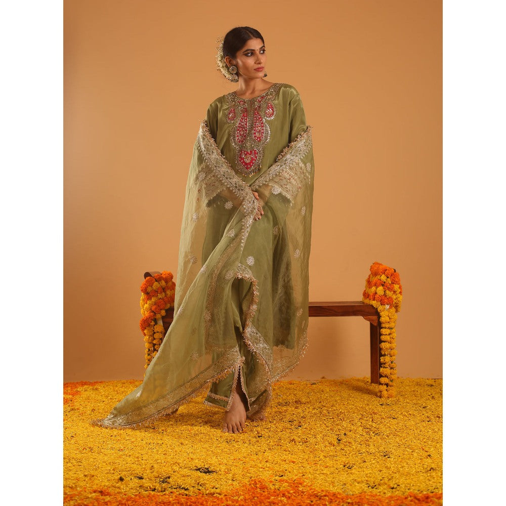 Green Straight Length Kurta with Pant and Dupatta (Set of 3)