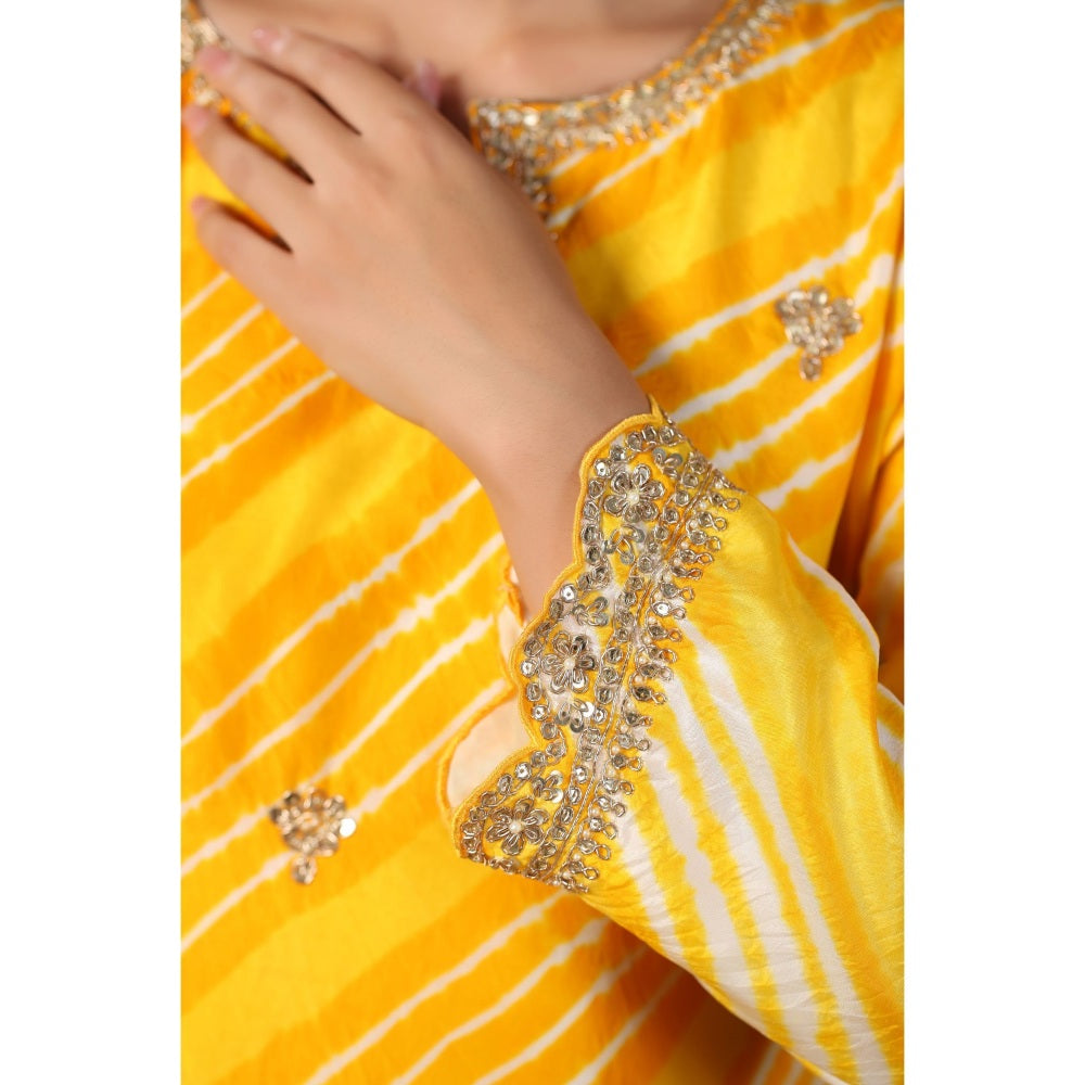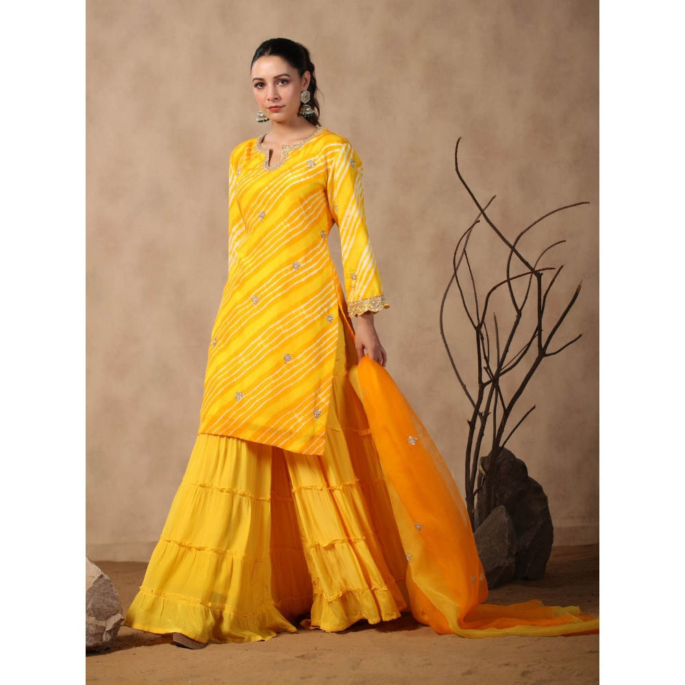 Yellow Leheriya Kurta with Sharara and Dupatta (Set of 3)