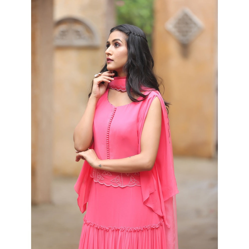 Payal Dawar Pink Mariyam Frill Top with Skirt (Set of 2)