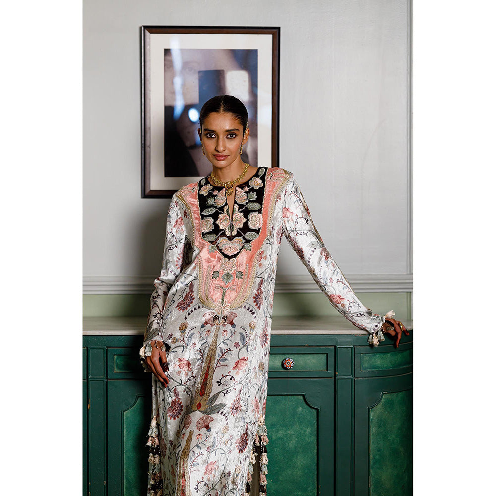 Payal Singhal Ivory Mehuish Whisper Printed Embroidered Dress