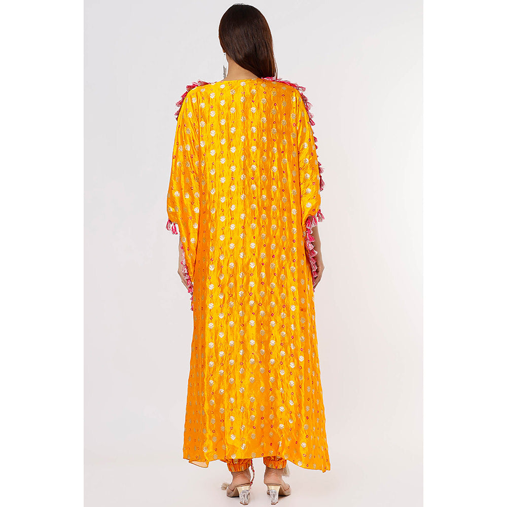 Payal Singhal Yellow Embroidered High Low Kaftan and Pant (Set of 2)