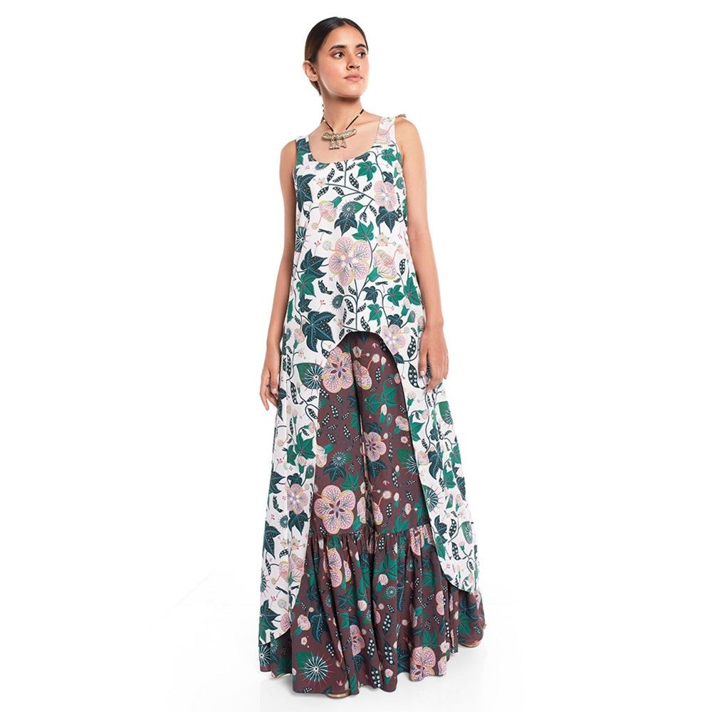 PS Pret by Payal Singhal Georgette White Printed Kurta With Palazzo (Set of 2)