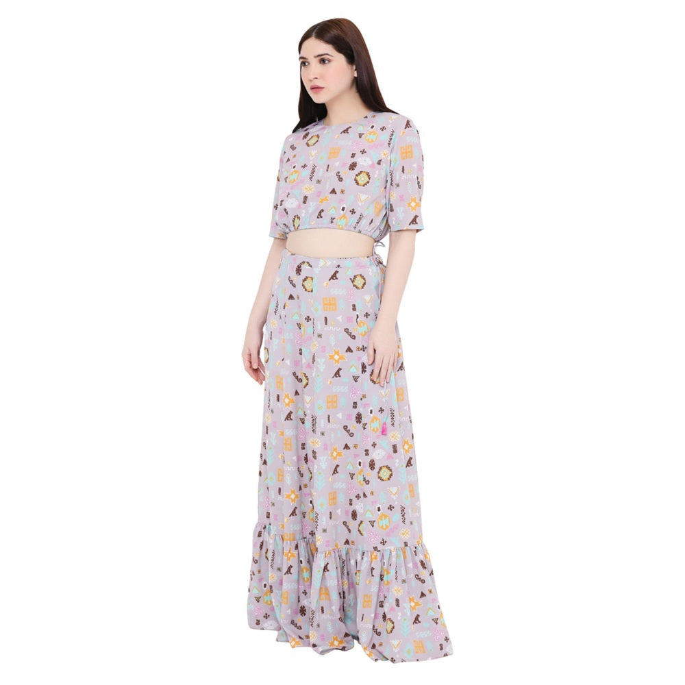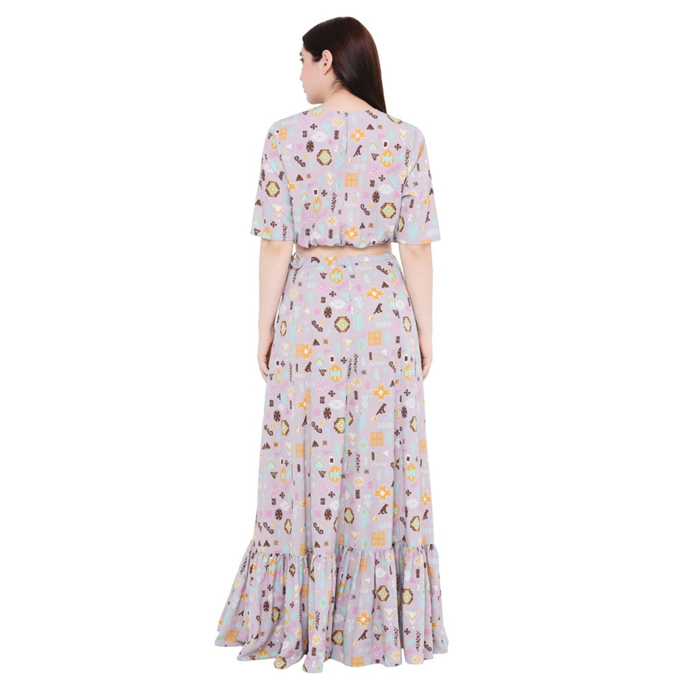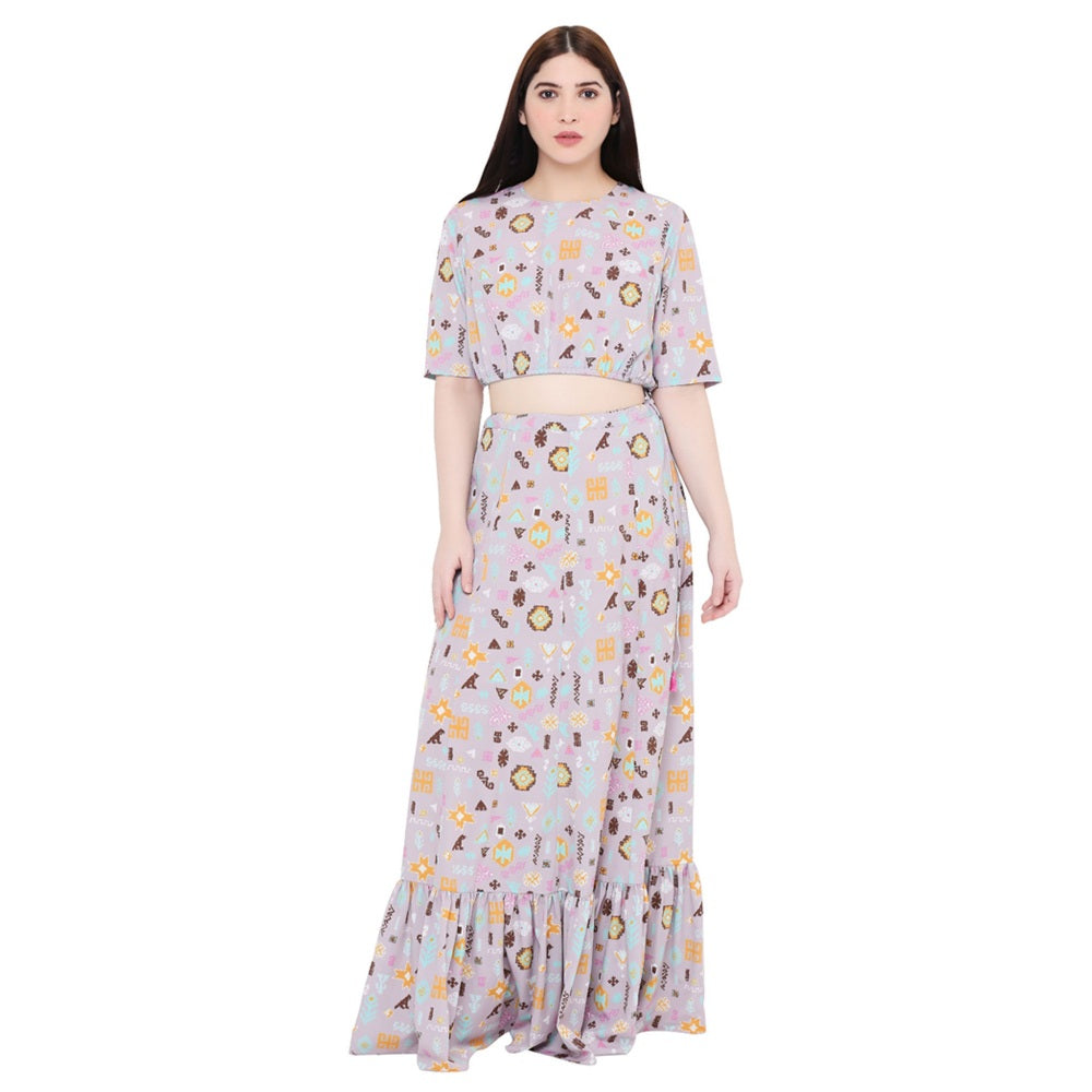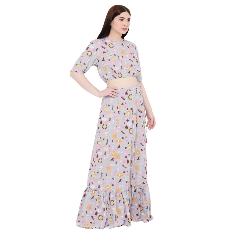 PS Pret by Payal Singhal Lavender Printed Art Crepe Skirt For Women (Set of 2)