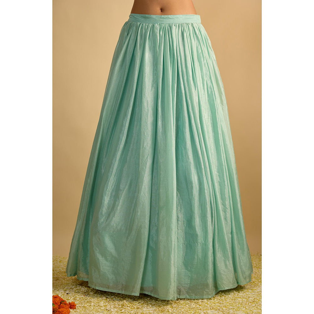 Description : Add grace to your wardrobe with this aqua lehenga set from RAYASHA KHAN. Made from high quality georgette, it features button fly closure and floral pattern along with full sleeves & keyhole neck design. Pair it with minimal jewellery and heels or wedges to complete your ensemble.