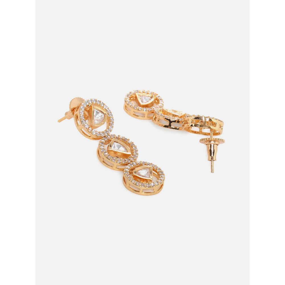 3 Tier Round Diamond And Kundan Earrings