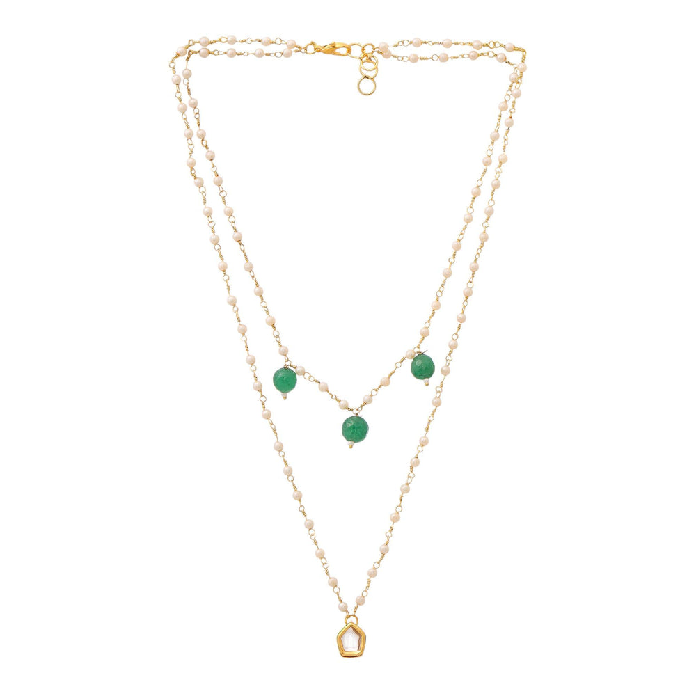 Ruby Raang Studio Green Brass Gold Plated Kundan Necklace